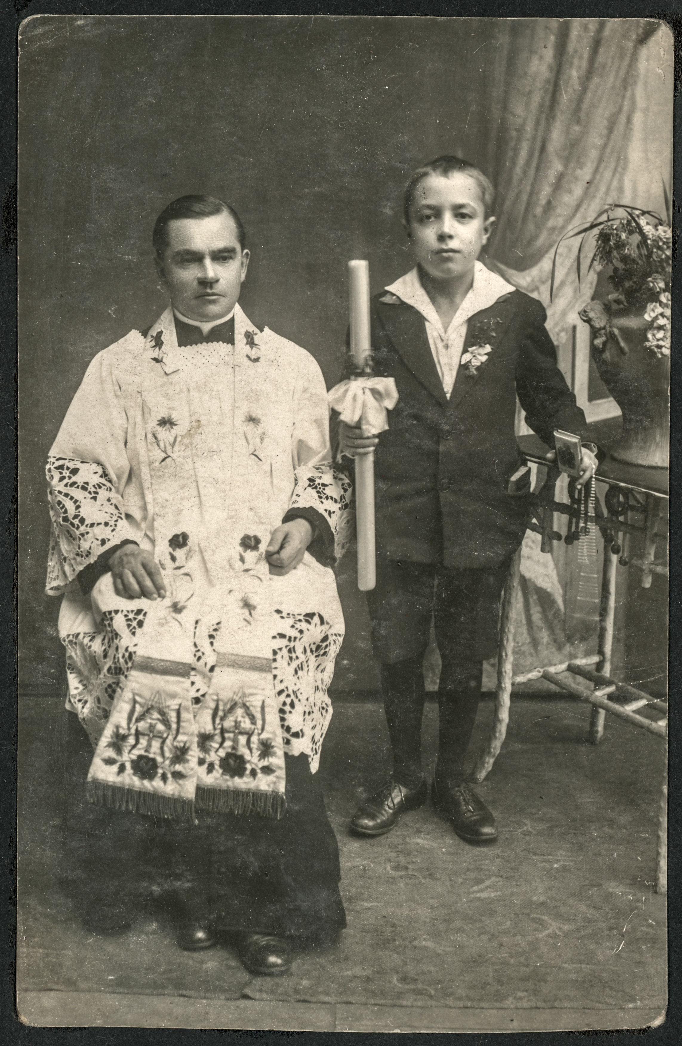 Portret chłopca i księdza - pamiątka I Komunii Świętej