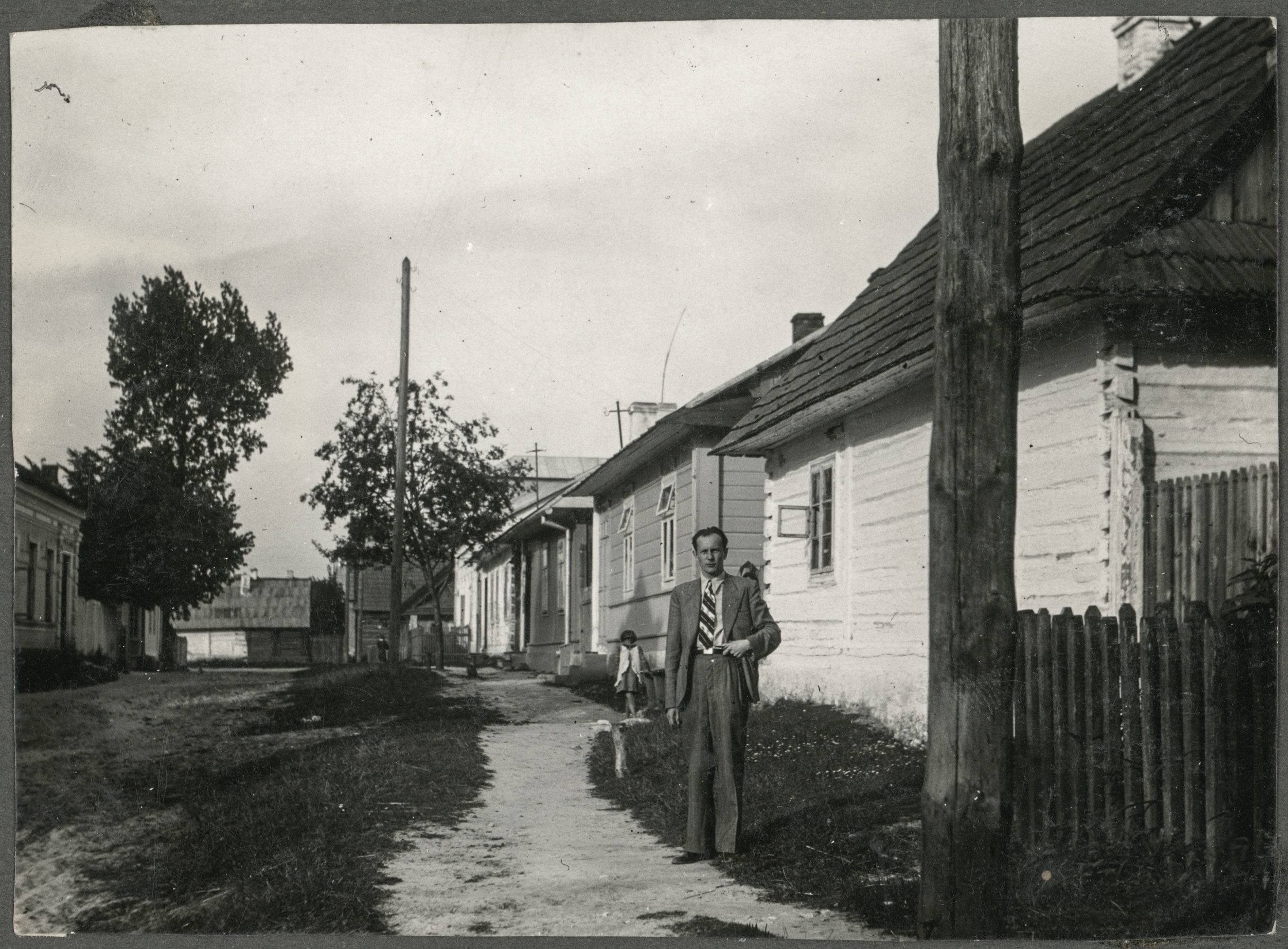 • fotografia ; dziewczynka ; mężczyzna ; budynek ; chata ; zabudowania