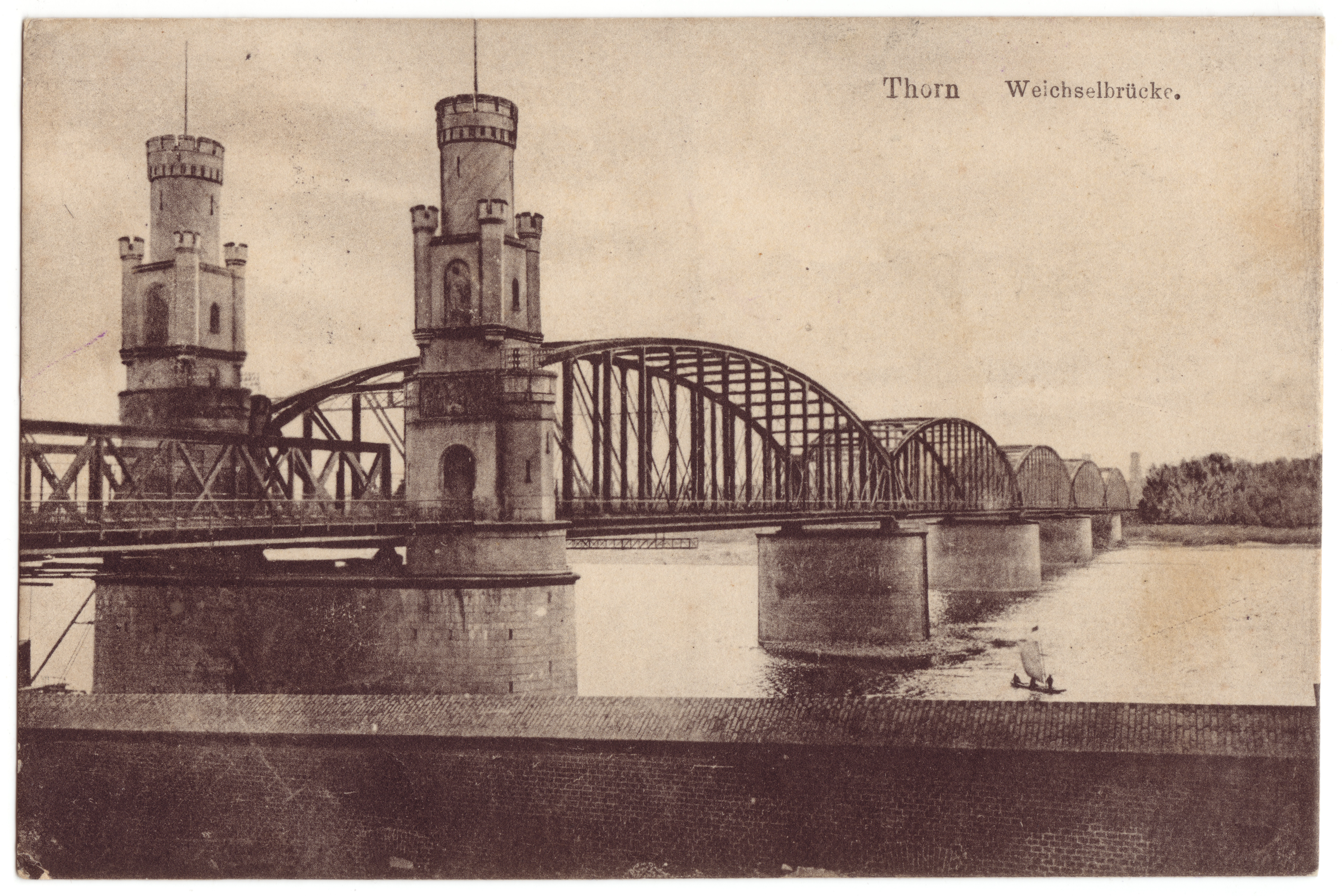 • pocztówka ; fotografia ; most kolejowy ; most kolejowy w Toruniu ; Wisła ; rzeka