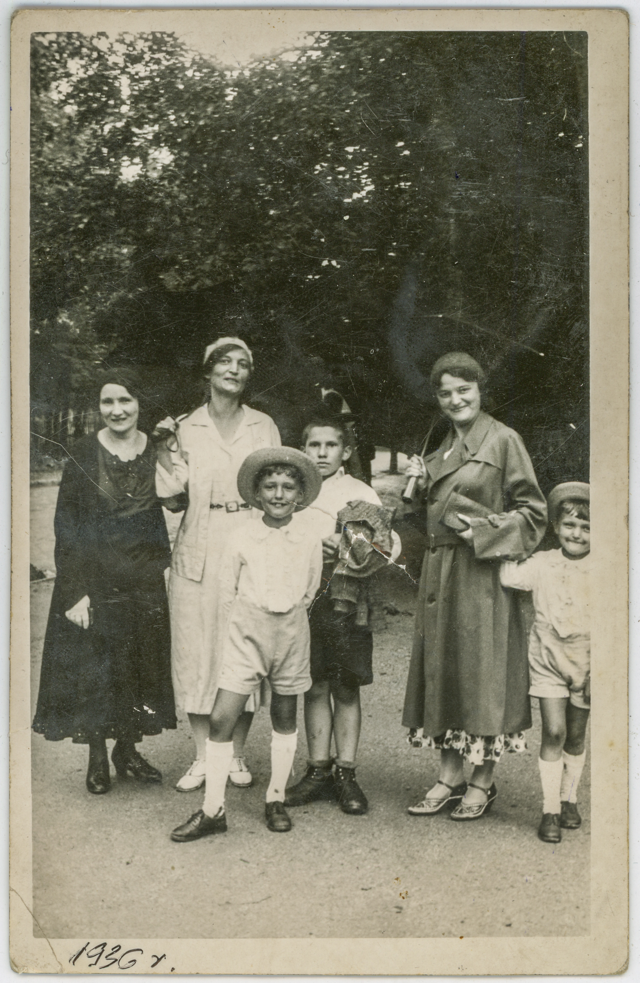 • portret ; kobieta ; dziecko ; chłopiec ; moda ; moda międzywojenna ; plener