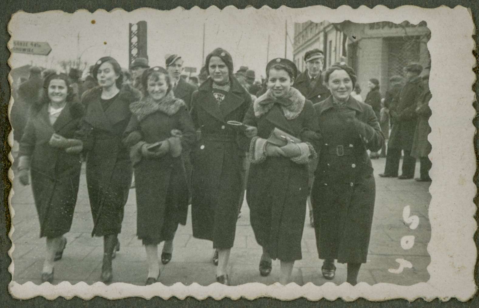 Portret zbiorowy kobiet podczas spaceru deptakiem