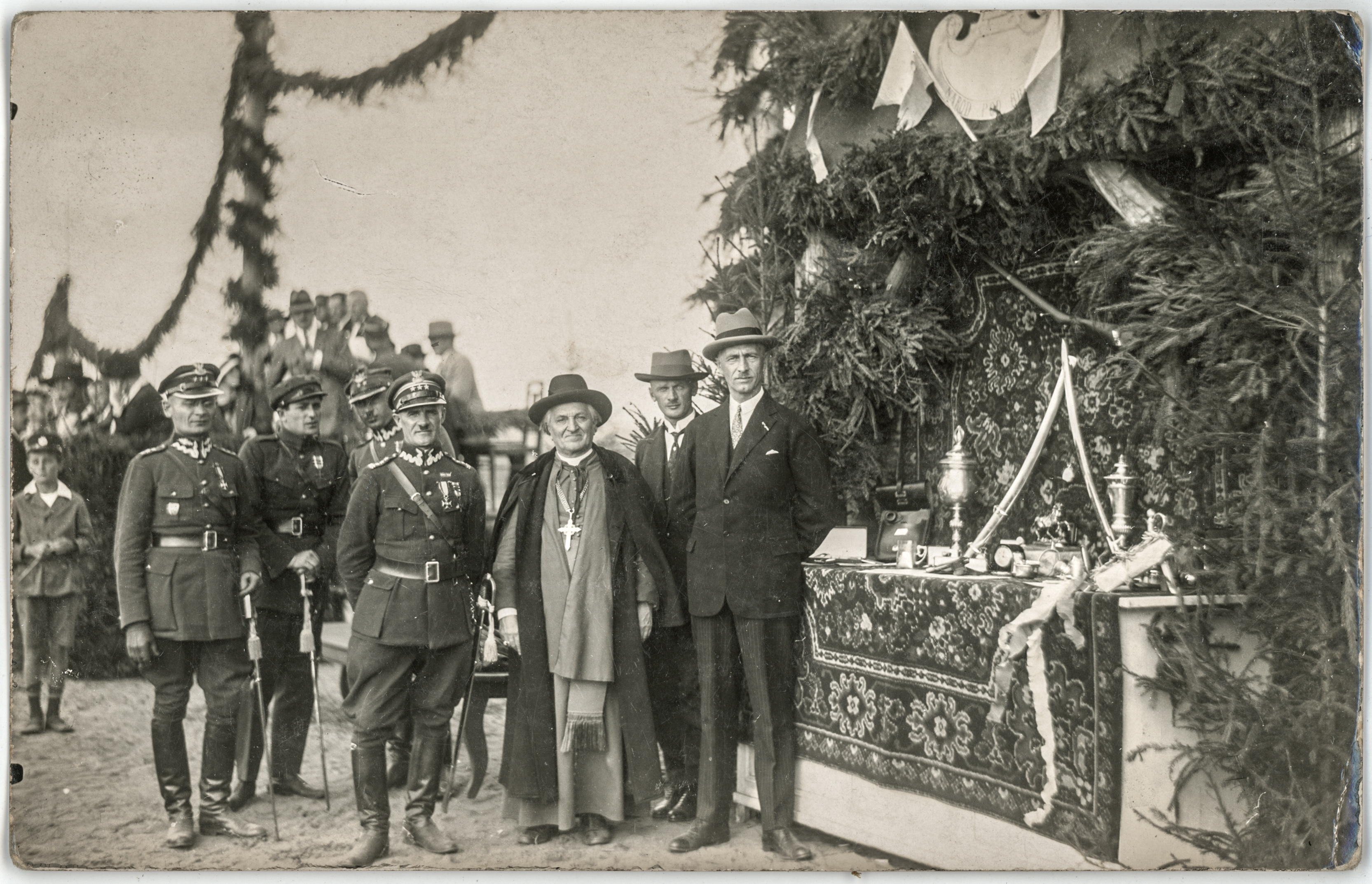 • fotografia ; portret ; mężczyzna ; ksiądz ; żołnierz ; msza polowa ; ołtarz