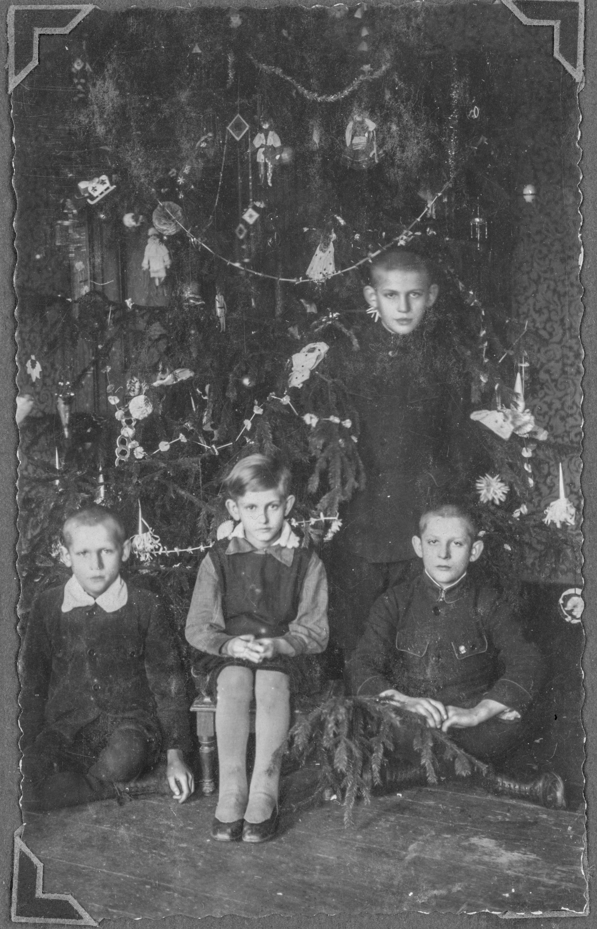 Portret rodzeństwa Grabałowskich przy choince