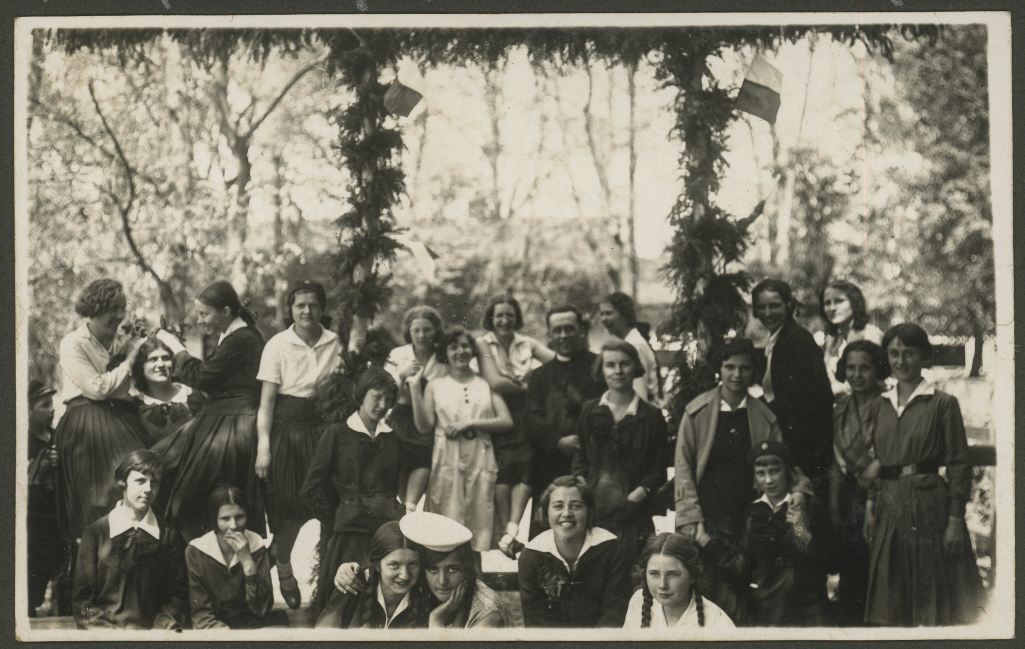 • fotografia ; portret ; dziewczyna ; moda ; moda międzywojenna ; mundurek szkolny ; religia ; katolicyzm ; ksiądz ; Sodalicja Mariańska ; Barbarka ; Osada Leśna Barbarka