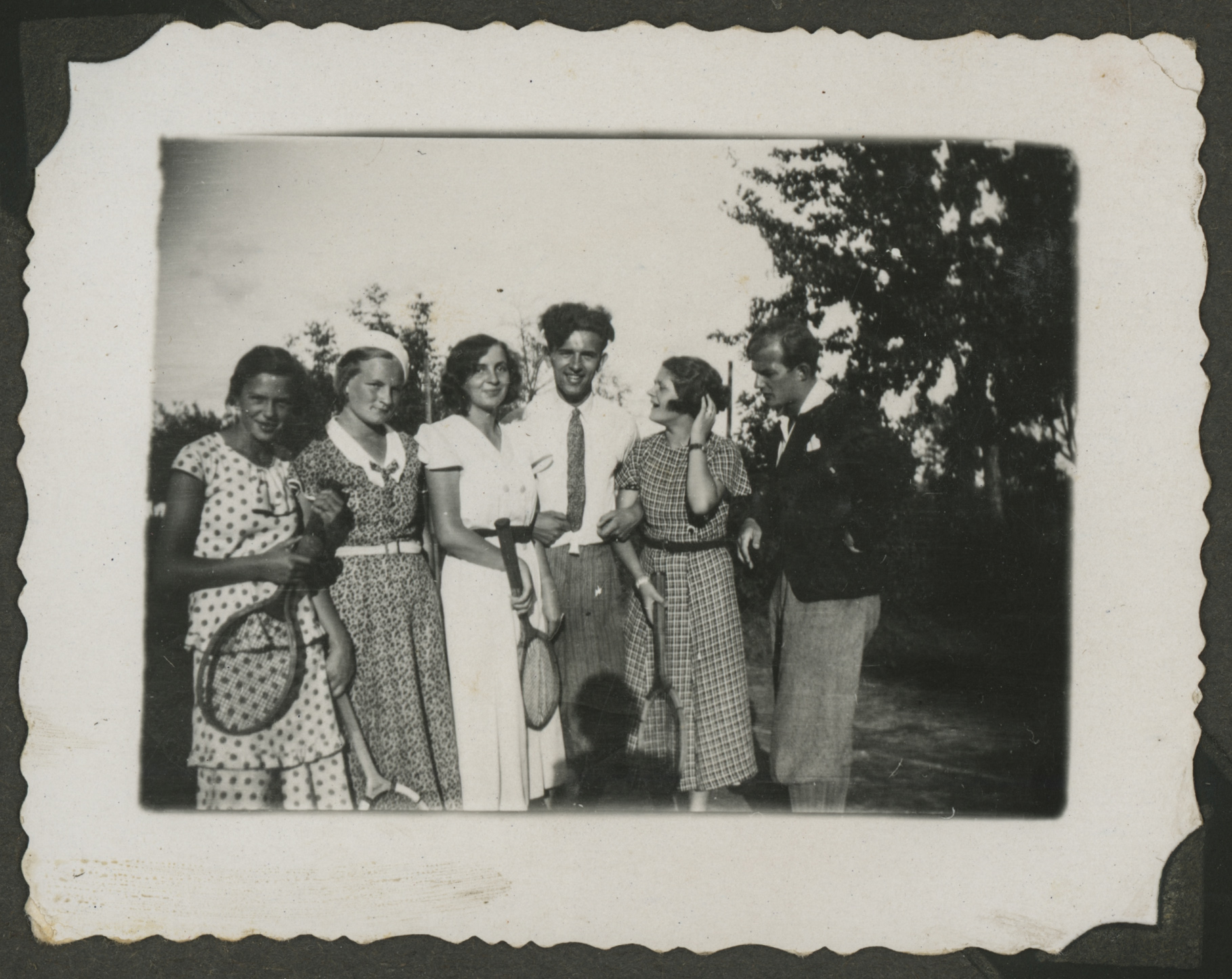 • fotografia ; portret ; dziewczyna ; mężczyzna ; moda ; moda międzywojenna ; sport ; tenis ; rakieta tenisowa ; kort tenisowy