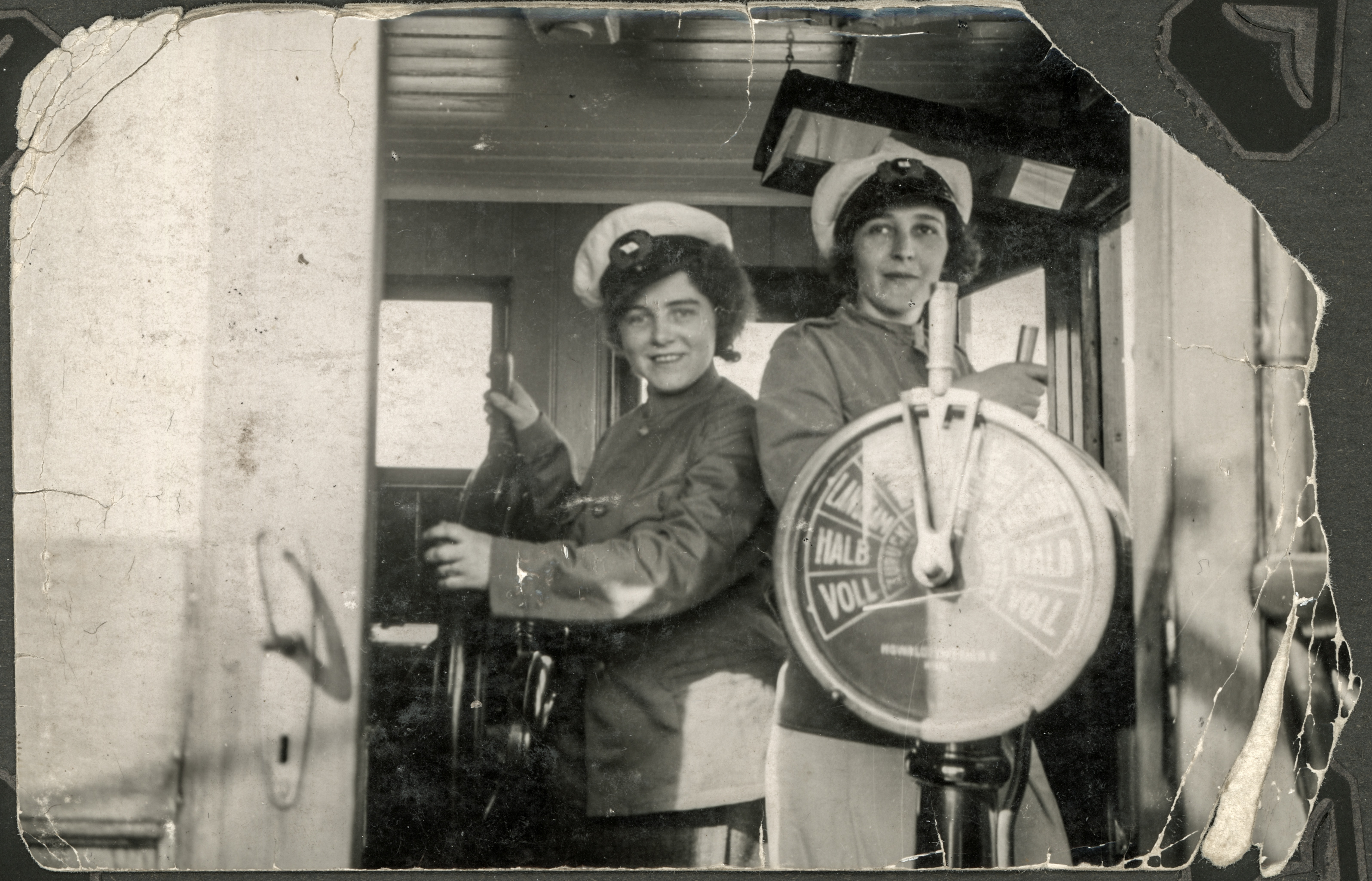 Portret Zofii i Anny Rogaczewskich za sterami statku