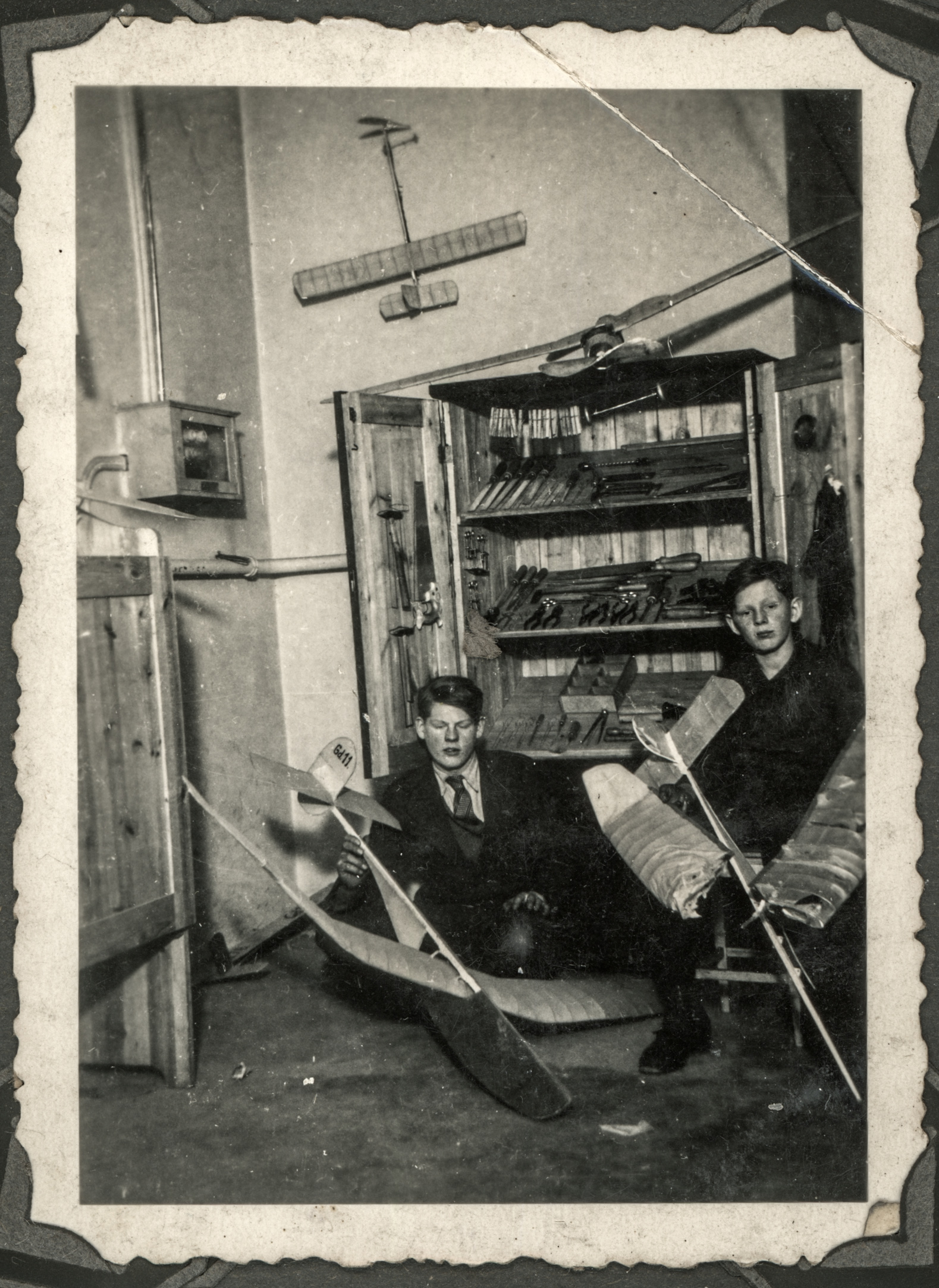Synowie państwa Śliziwskich bawiący się modelami samolotów