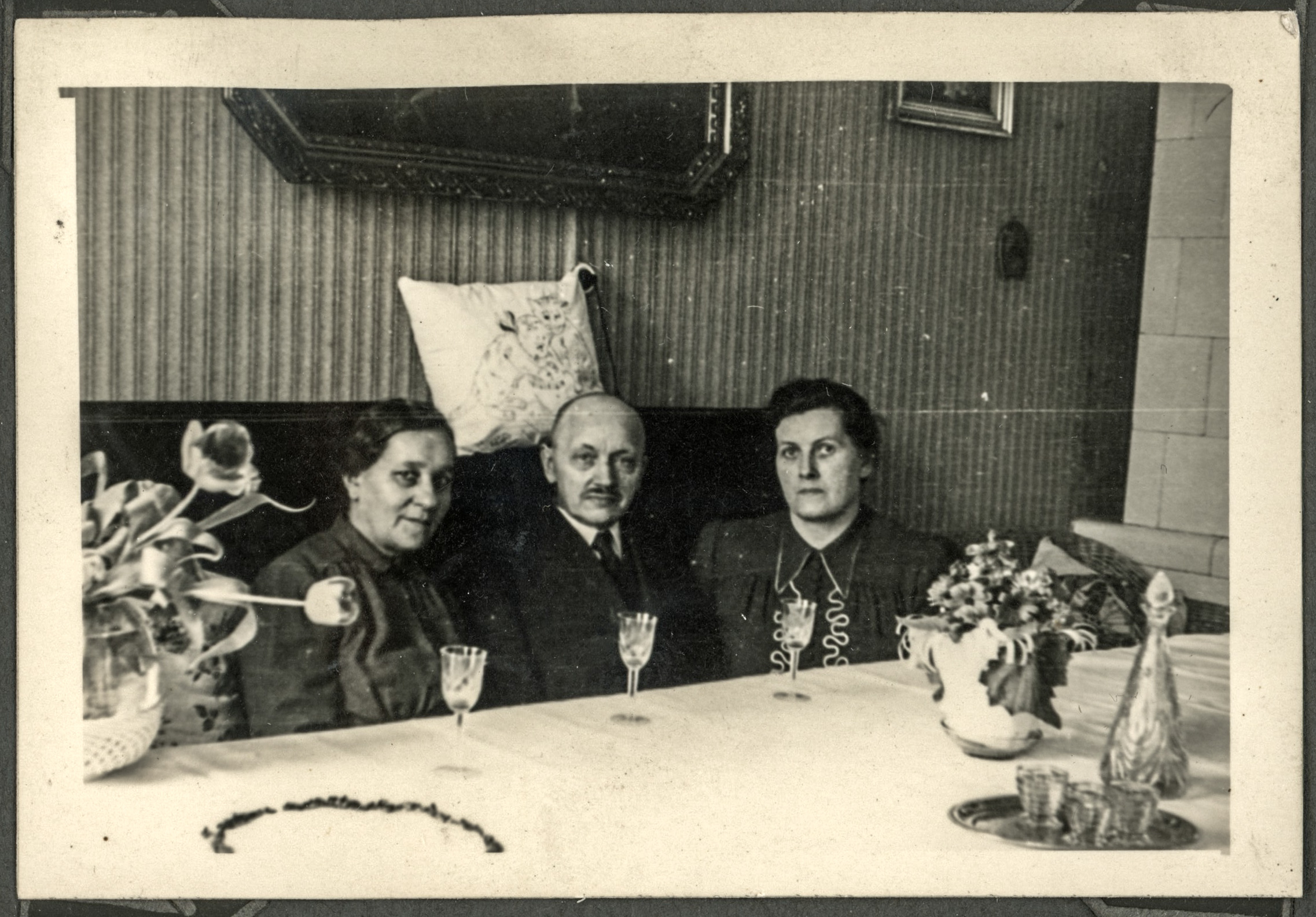 Portret dwóch kobiet i mężczyzny siedzących przy stole