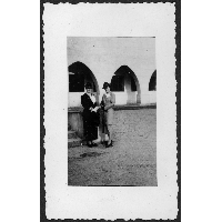 Dwie kobiety przy hali wystawowej w ToruniuDwie kobiety przy hali wystawowej w Toruniu